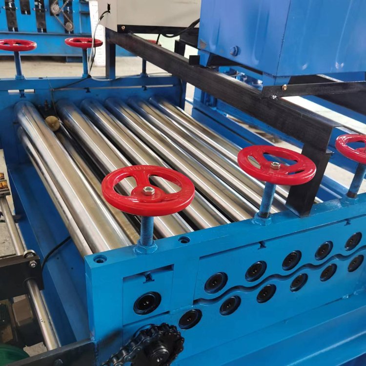 1、將板料從校平機(jī)牽引輥方向倒入,出板后視板材平整情況進(jìn)行微調(diào)。