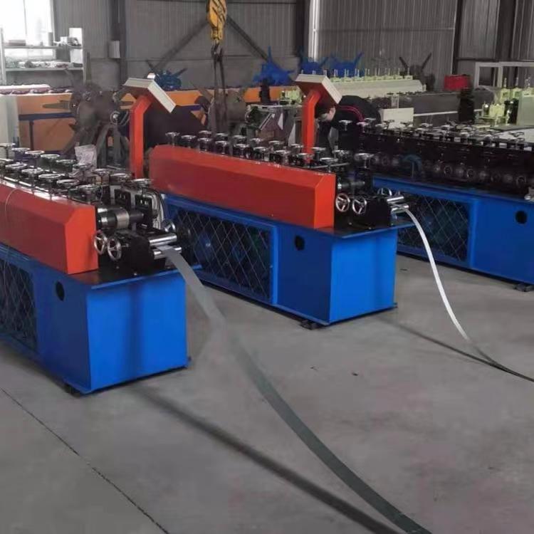 2、輕鋼龍骨機(jī)的使用要注意調(diào)節(jié)行程,在冷彎前一定要試車。輕鋼龍骨機(jī)上模下行至底部時(shí)有一個(gè)板厚的間隙,否則會(huì)對(duì)模具和機(jī)器造成損壞,行程的調(diào)節(jié)也是有電動(dòng)快速調(diào)整和手動(dòng)微調(diào)。