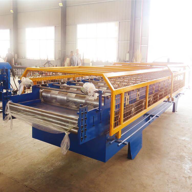 電剪切840壓瓦機前的調試應用先把彩鋼壓瓦機設備機前、后兩排隊的四角從大架到底軸上端的高度量一致,然后從排到后一排,找一根線拉直,檢查一下,下軸是否在一條直線上,把下軸左、右兩邊調成水平。把彩鋼瓦設備排和后一排找好中心,然后緊固兩邊鎖母,在中間輪的正中心前、后拉好一條直線,把上、下軸的間隙調整好后,就可順著直線調整機器。