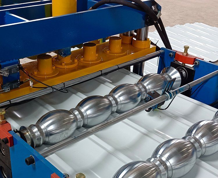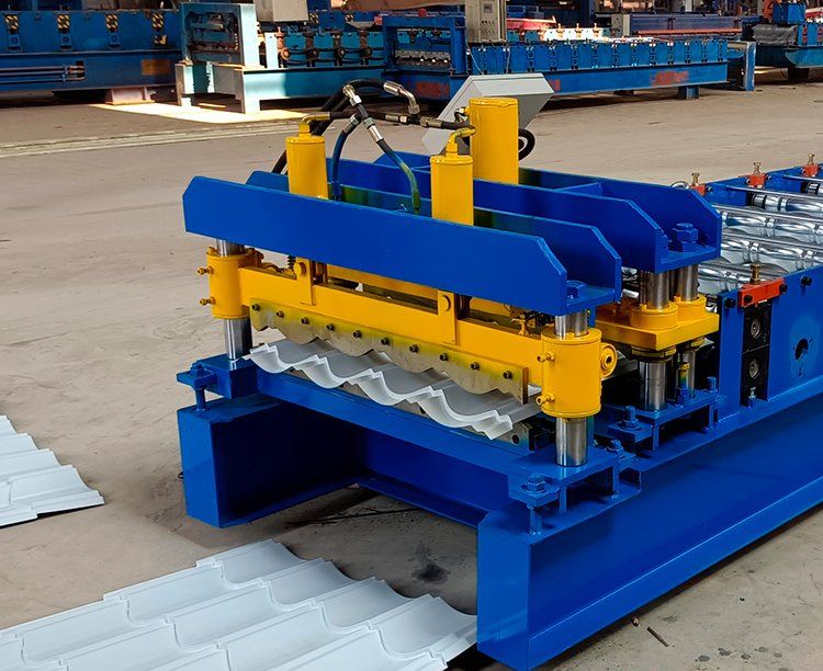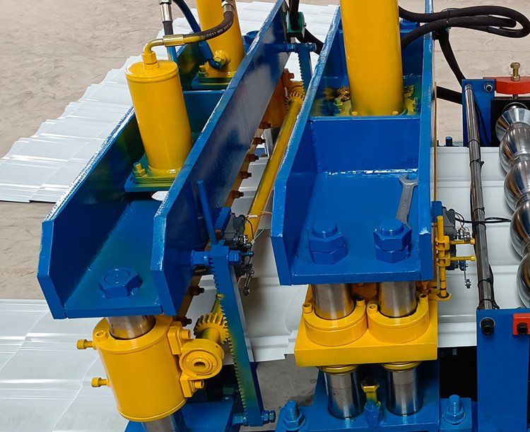 828琉璃瓦機包括成型主機、液壓站、放料架、成型剪、控制箱、出料架等幾部分。828琉璃瓦機設備使用前,要檢查各處連接是否牢靠,安裝螺栓、螺母是否擰緊,左右機箱內應加足潤滑機油,才能通電啟動機器進行試車。