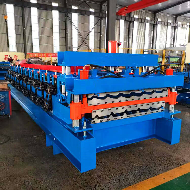 雙層壓瓦機:該機將兩種型號結合在一起,結構合理、外形美觀。具有節省占地空間、操作簡單等特點,特別適合場地小和現場施工的客戶使用。雙層壓瓦機采用三晶變頻器,斷板米數單板張數準確度提高,而且整體主機大架采用250H鋼,整體U型中板,實心軸滿輪設計,整體性能穩定。