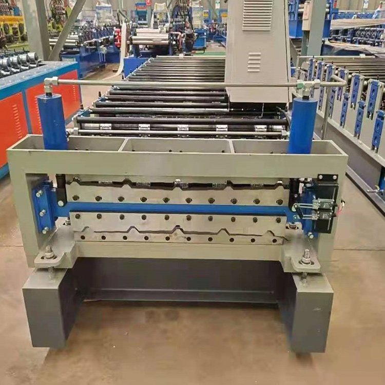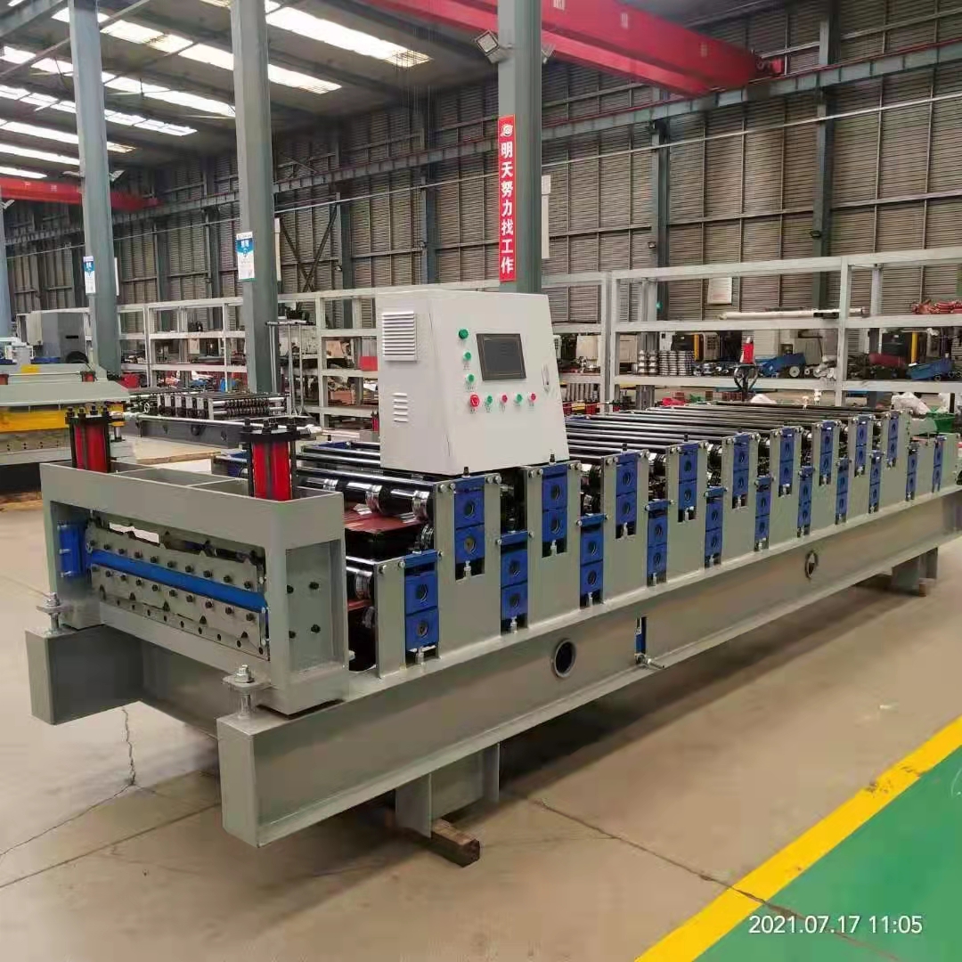 840-900雙層壓瓦機(jī)主要由進(jìn)料導(dǎo)入平臺、成型主機(jī)、成型剪切裝置、液壓站、電腦控制系統(tǒng)等幾部分組成。