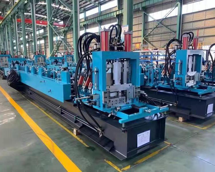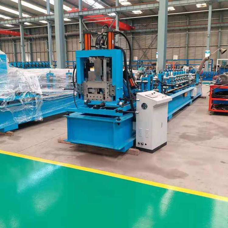 無極變速C型鋼機由裝料架、調整系統、成型系統、校正系統、電腦控制系統、液壓系統、沖孔、剪切系統組成,無極切斷C型鋼結構設備所生產的產品廣泛應用于鋼結構標準廠房及各種簡易棚等場合。
