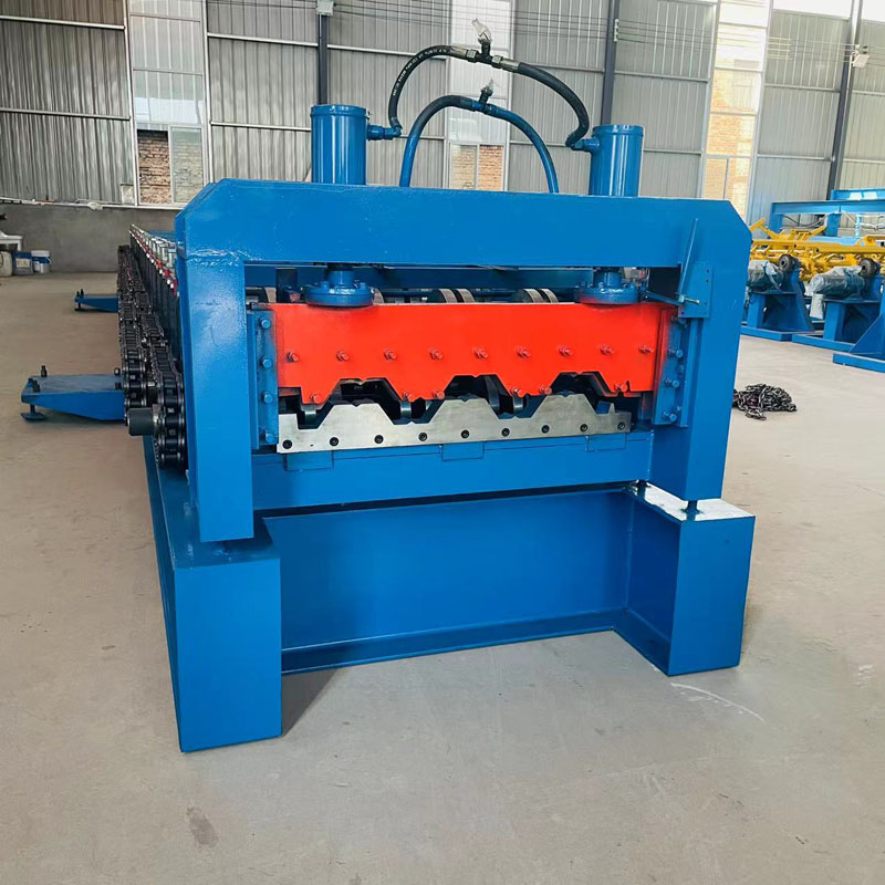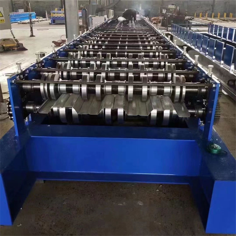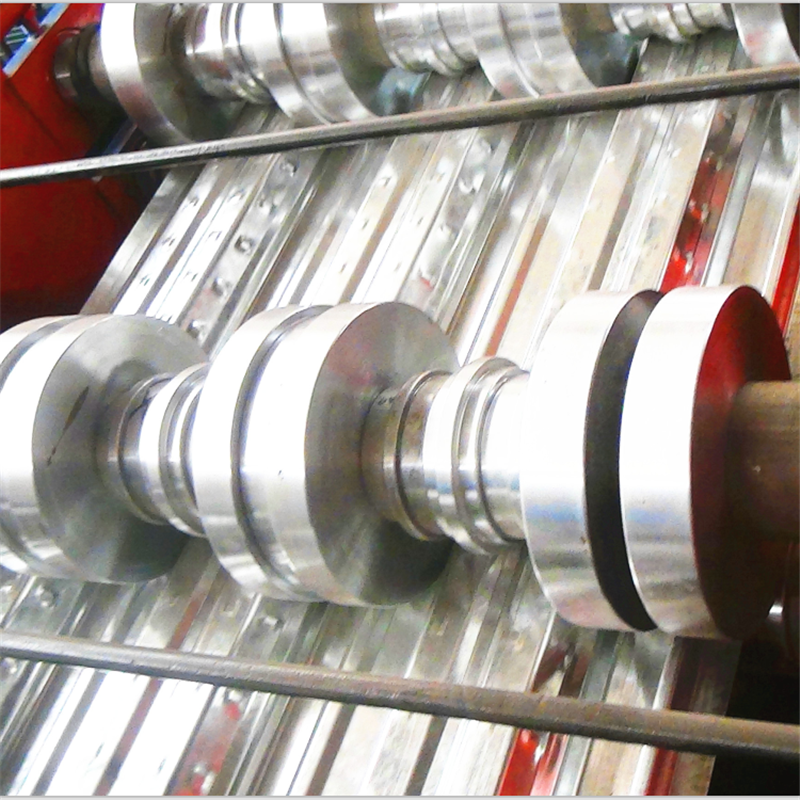 915樓承板機生產的鋼樓承板形狀簡潔,波度大,,安裝時鋪置焊接鋼筋網后與混凝土觀場澆灌組合,粘合性好,在高層建筑上既可以省去鋼模板,又可以減輕樓層承載,在達到同等承受能力的前提出,使工程用鋼量減少,從而節省投資。